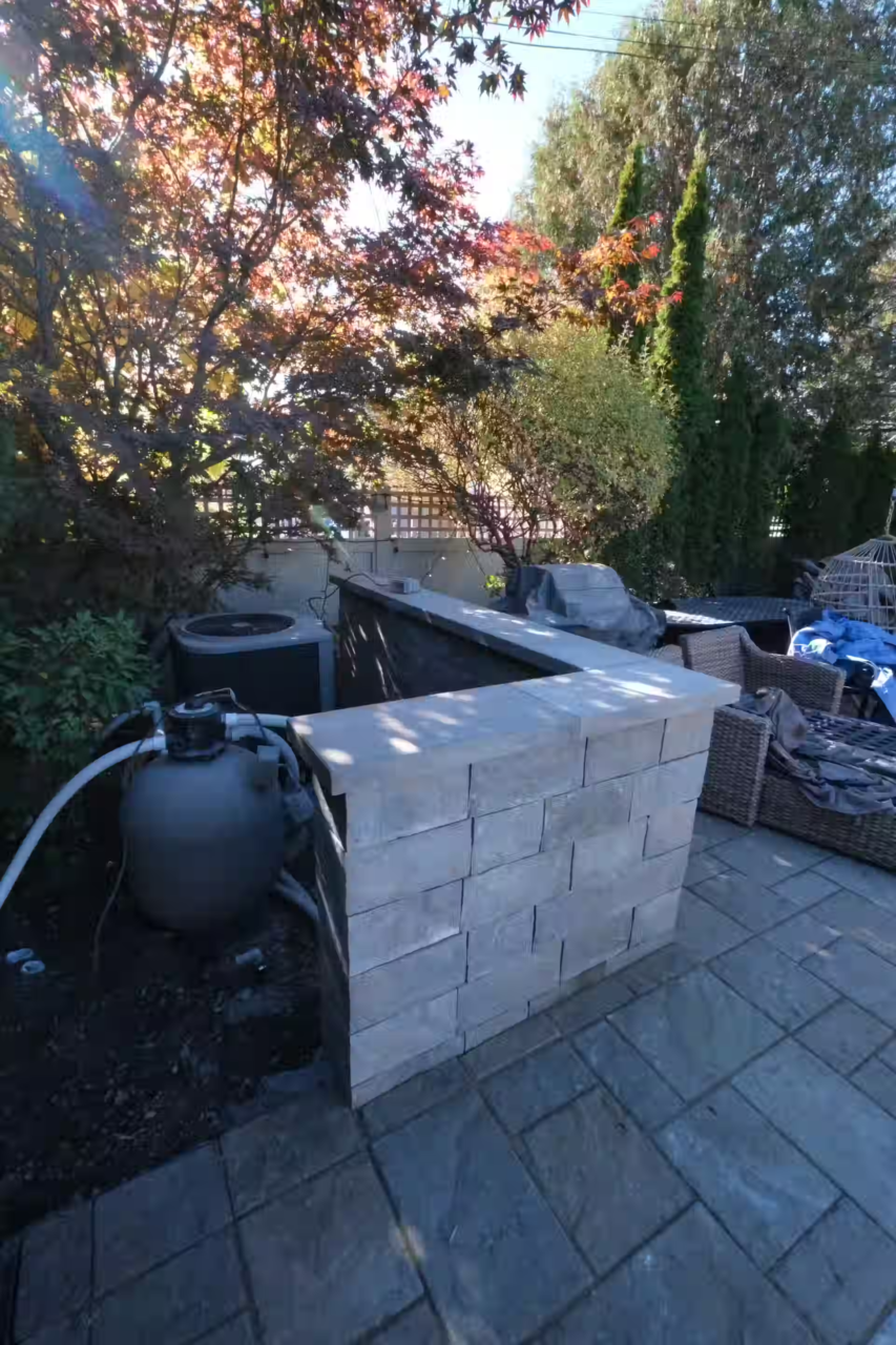 This project features a breathtaking paver patio that seamlessly integrates luxury and functionality. Elevated by a substantial retaining wall, the space offers sweeping views of a serene pond, creating a tranquil and picturesque retreat. At the heart of this outdoor oasis is a stunning pool, designed for both relaxation and entertainment. Whether you’re taking a refreshing dip on a warm day or unwinding by the water’s edge, the pool serves as a focal point of elegance and leisure.