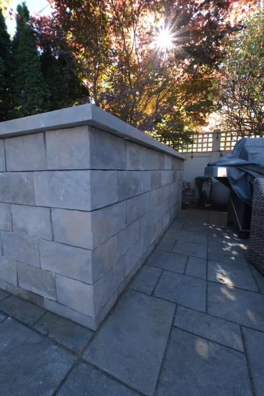 This project features a custom outdoor bar designed for entertaining and serving drinks to guests. The bar also acts as a stylish way to conceal pool equipment while keeping the space functional and practical, with ample counter space and a thoughtful layout.